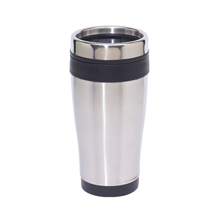 • Tourist cup with double walls Lungo. The outer wall is made of stainless steel, inside is plastic. Fitted with screw cover with built-in drinking hole. Capacity - about 400 ml.