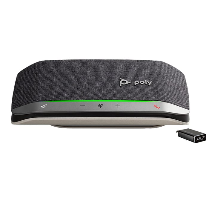 Poly Sync 20+ combines the functionality of a conference speaker with the convenience of the portable audio device