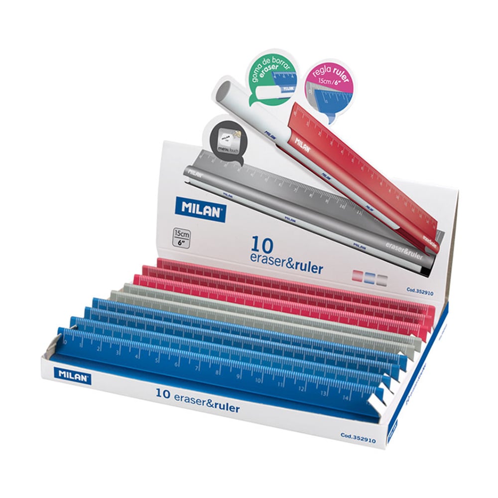 Milan Ruler Metal Touch, with eraser, 15 cm, display box, pack of 10