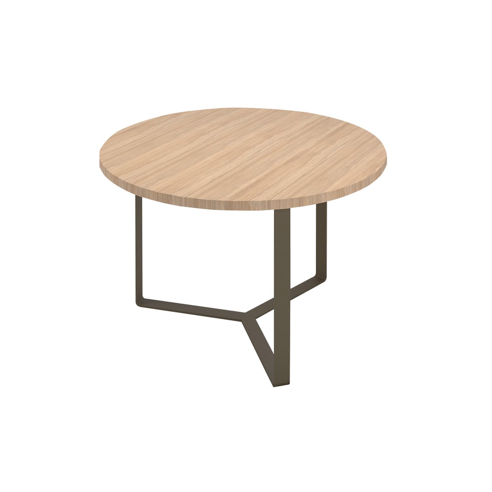 Conference table Narbutas Plana, 1200 x 1200 x 750 mm, round top, chipboard 36 mm, amber oak melamine, dark bronze metal
