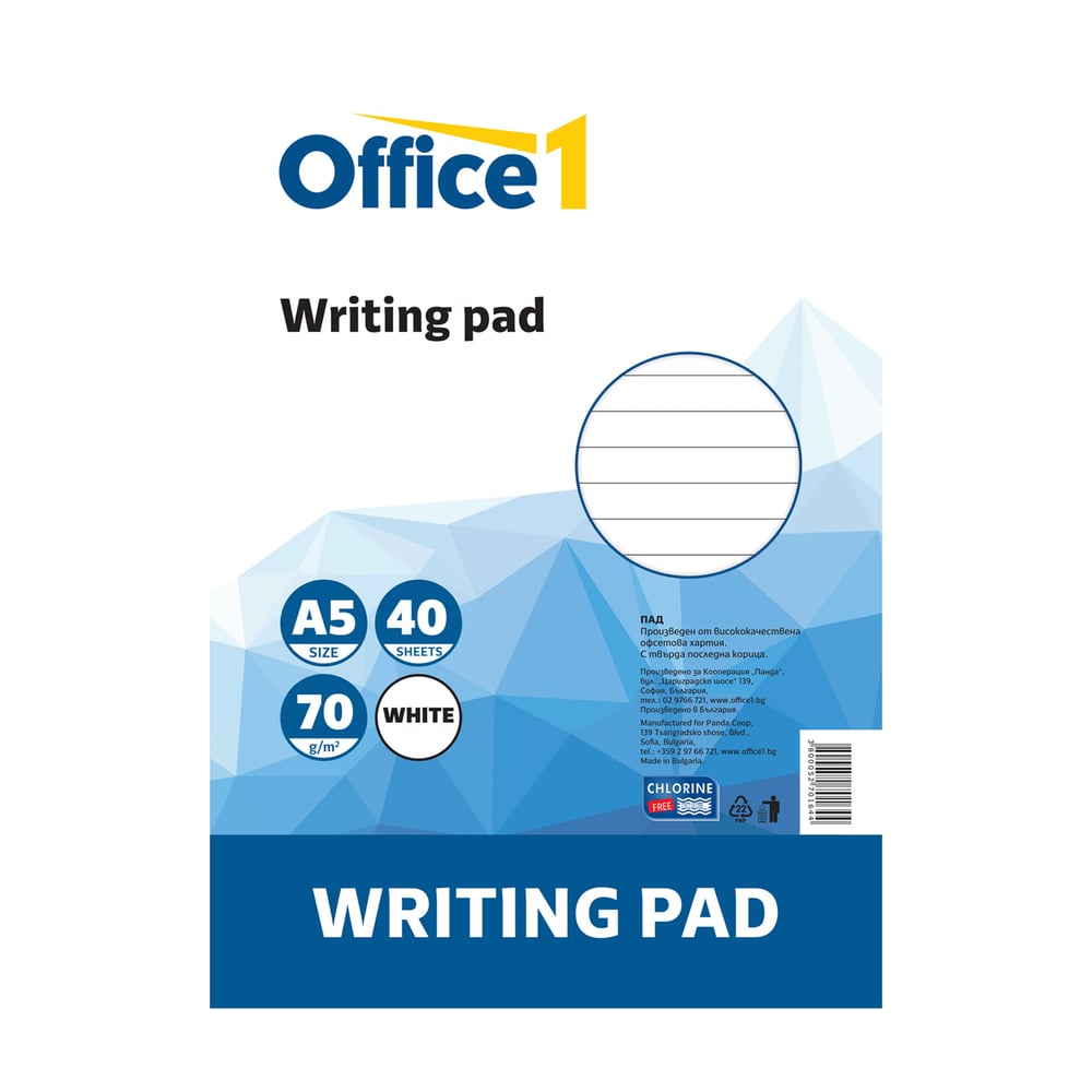 Office 1 Pad, A5, wide ruled, white sheets, soft cover, 40 sheets