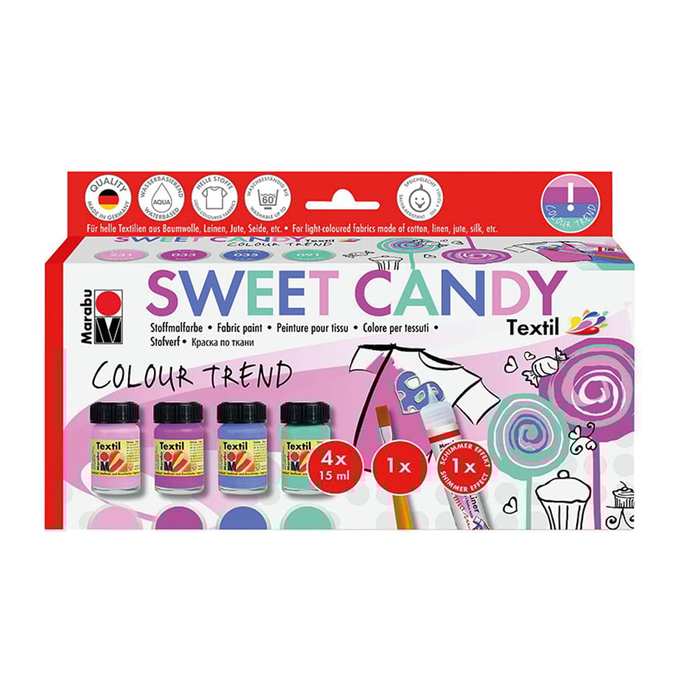 Marabu Textile Paint Textil Sweet Candy, 15 ml, 4 pcs