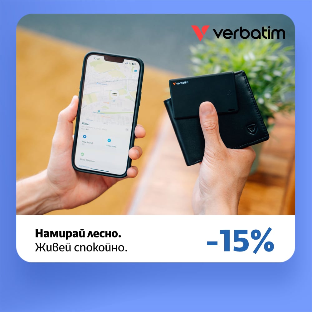 Проследяващо устройство Verbatim My Finder, тип карта, черно