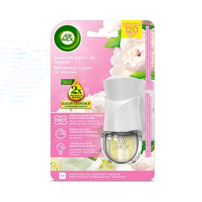 Ароматизатор Air Wick, електрически комплект Extra Oils, божур и жасмин, 19 ml