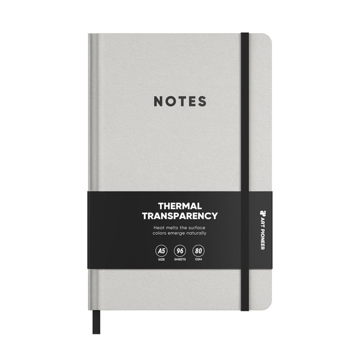 • Бележникът е стилно и функционално решение за ежедневни записки, идеи и планиране. Отличава се с минималистичен дизайн и иновативна корица с термоактивен ефект, която реагира на топлина – при допир или промяна в температурата, повърхността променя своята визия, създавайки фин и елегантен визуален акцент.