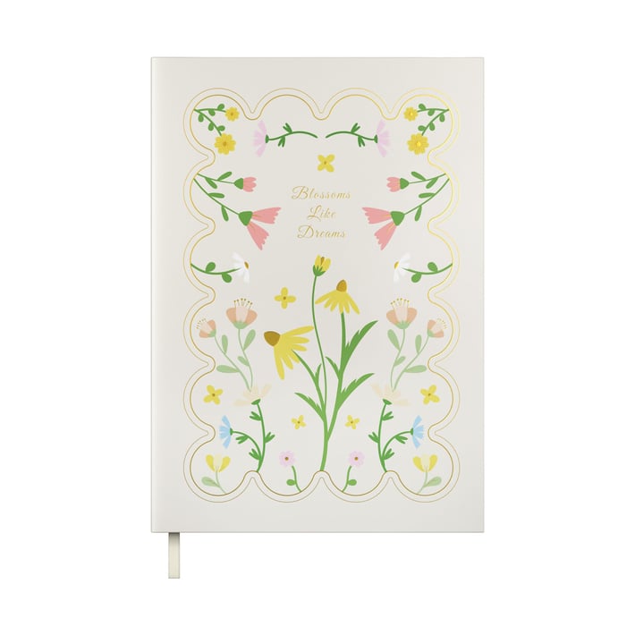 • Елегантна тетрадка във формат A5 с твърда корица и фино илюстриран флорален дизайн, който съчетава нежни форми и декоративни детайли за вдъхновяващо усещане при всяко използване.