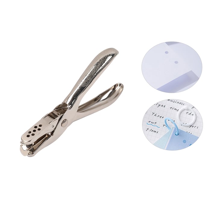 Създаден за ефективност и издръжливост, този перфоратор (тип клещи) е изработен от здрава метална конструкция и разполага с ергономични дръжки, които осигуряват комфорт дори при продължителна работа. Прецизната изработка гарантира чисти и точни отвори при всяка употреба.Инструментът е предназначен за пробиване на единичен отвор с диаметър 6 mm – идеален за подвързване на документи, изработка на тефтери или персонализирани проекти.Капацитет до 10 листа хартия едновременно.Размери: 12.7 х 5.8 х 1.5 cm.