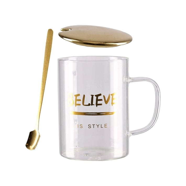 Чаша Takk Moka, Love, керамична, с капак и лъжица, златиста