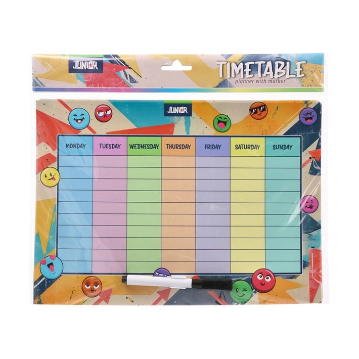 Дъска с програма за седмицата Junior Timetable, с маркер, А4