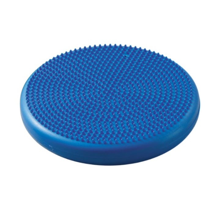 Надуваема динамична възглавница, която имитира движението и формата на гимнастическа топка. Използва се за тренировки на равновесие, укрепване на мускулатурата и подобряване на координацията и сетивното възприятие.Възглавницата има две различни повърхности – едната с релефни точки за стимулиране на тактилните усещания, а другата с по-мека текстура за по-нежно въздействие. Подходяща е за упражнения на пода или като седалка, която активира коремните и гръбните мускули.Идеална за детски занимания, рехабилитация или фитнес – развива баланс, стабилност и сетивна координация чрез движение и игра.Максимално натоварване: 100 kg.Диаметър: 60 cm.Височина: 6 cm.