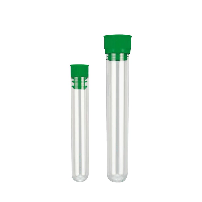 Нестерилна пластмасова епруветка, предназначена за лабораторни изследвания.