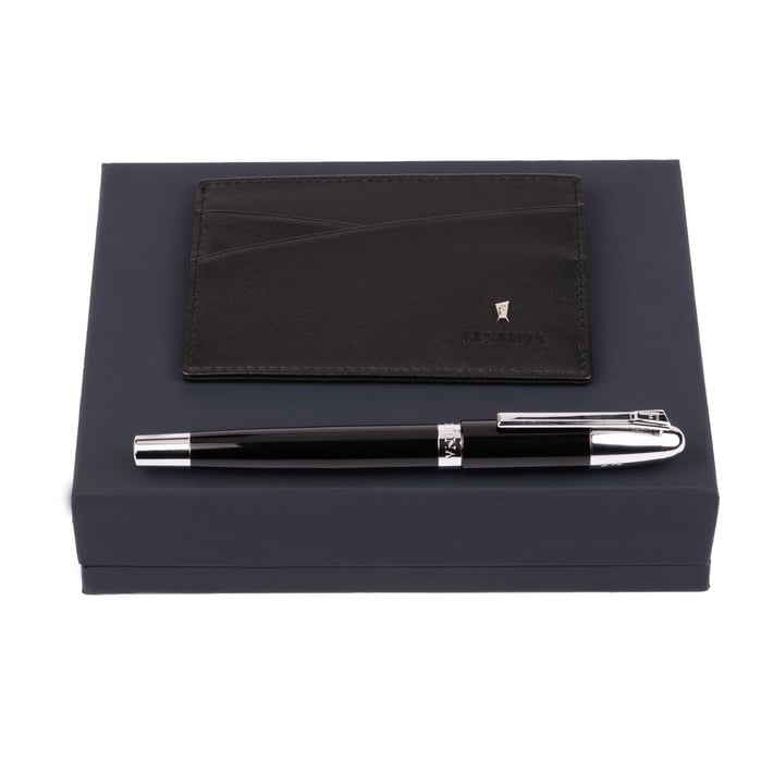 Комплектът съдържа:Химикалка и калъф за карти.