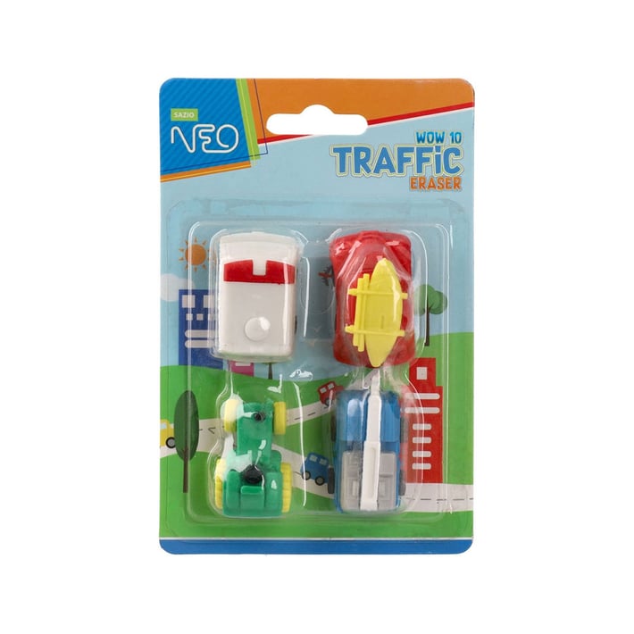 Гума за молив Sazio Wow10, превозни средства, 4 броя