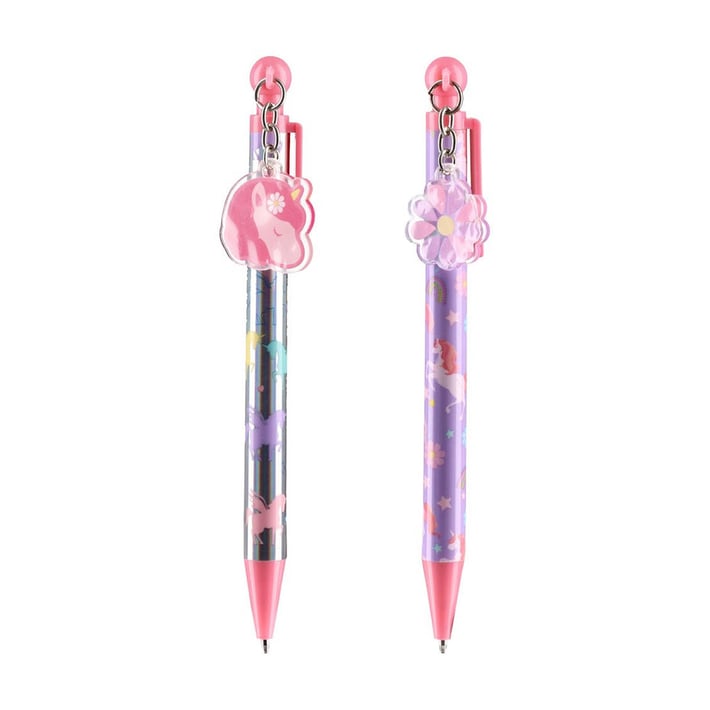 • Комплект от 2 химикалки с декоративен ключодържател еднорог.