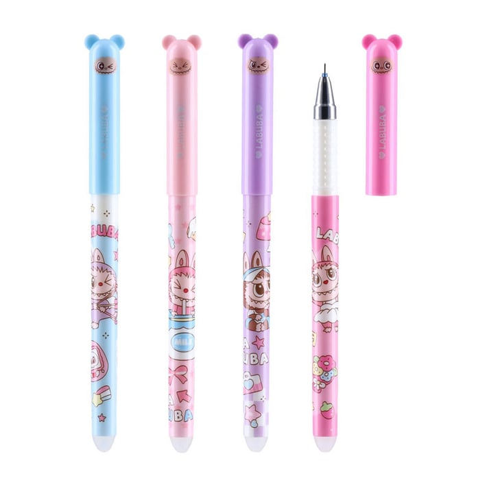Изтриваема гел химикалка STC Buburase с атрактивен дизайн Lububu, предлагана в асорти цветове. Моделът е снабден със силиконова гумичка в горната част, която позволява лесно изтриване без оставяне на петна и следи от изтриване. Осигурява фино и прецизно писане и е подходяща за училище, офис или ежедневна употреба.