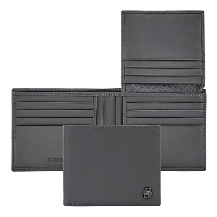 - Hugo Boss Портфейл за карти Saffiano Double B, с капак, сив