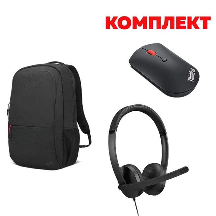 Lenovo ThinkPad комплект слушалки, мишка и раница – практично и стилно решение, съчетаващо всичко необходимо за комфортна работа и продуктивност, независимо дали сте в офиса, у дома или в движение.