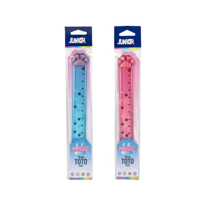 Ученическа линийка с дължина 15 cm и атрактивен принт на лапички.