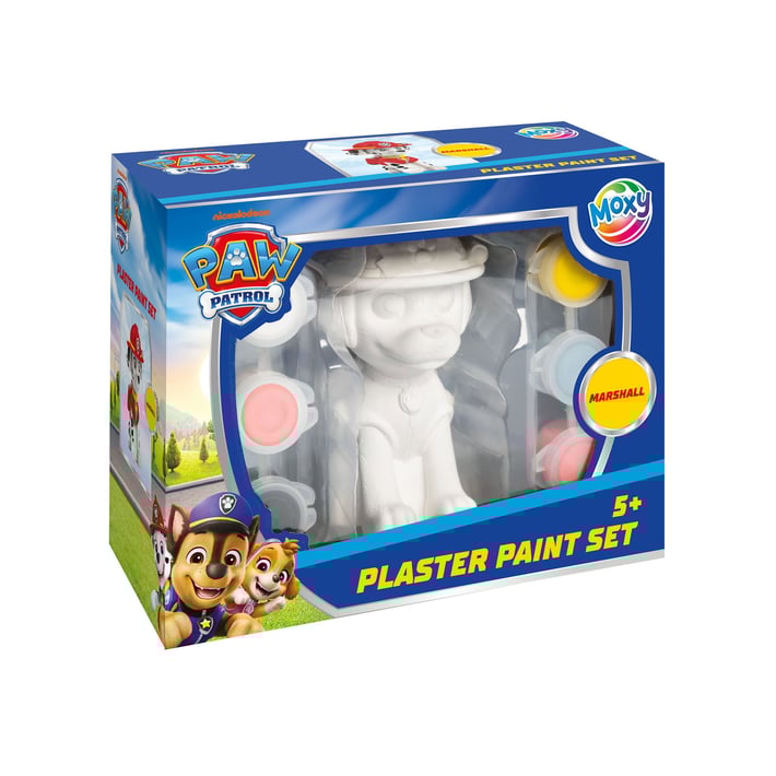 С този творчески комплект всяко дете може да създаде своя собствена цветна фигурка на любим герой от Paw Patrol – смелото кученце Marshall! Комплектът включва гипсова фигурка, 6 цвята боички и четка за рисуване, така че малките творци да могат веднага да започнат да оцветяват.Подходящ е за развиване на фината моторика, концентрацията и въображението. Перфектен избор за подарък или забавление у дома.