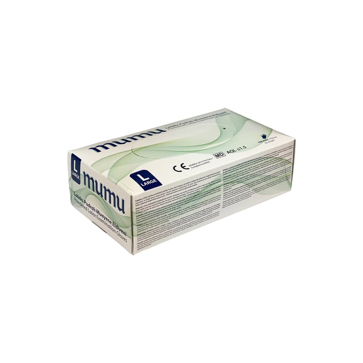 Ръкавици Mumu, латексови, L, с пудра, 100 броя