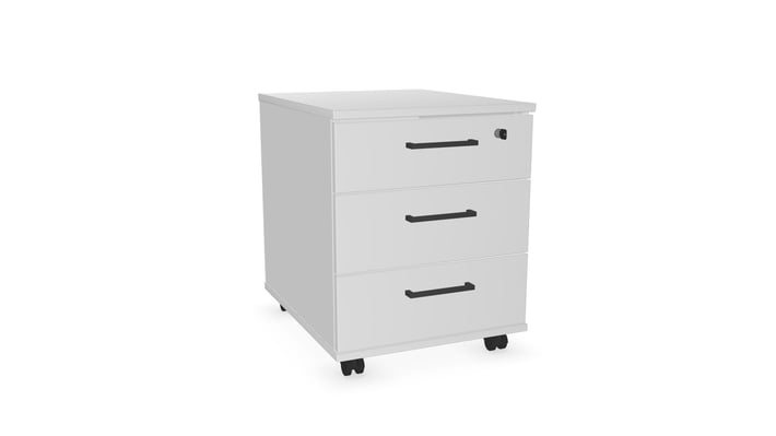 Контейнер за бюро Narbutas Optima, 415 x 500 x 510 mm, с колелца, ПДЧ, бял меламин, тъмносива правоъгълна дръжка