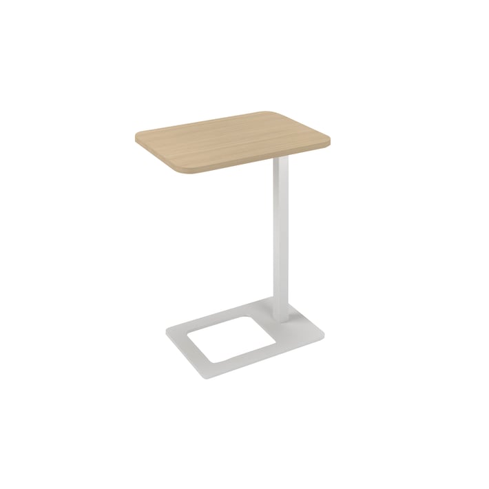 Маса Narbutas Mobi, помощна, 400 x 500 x 620 mm, правоъгълен плот, ПДЧ, меламин избелен дъб, бял метал
