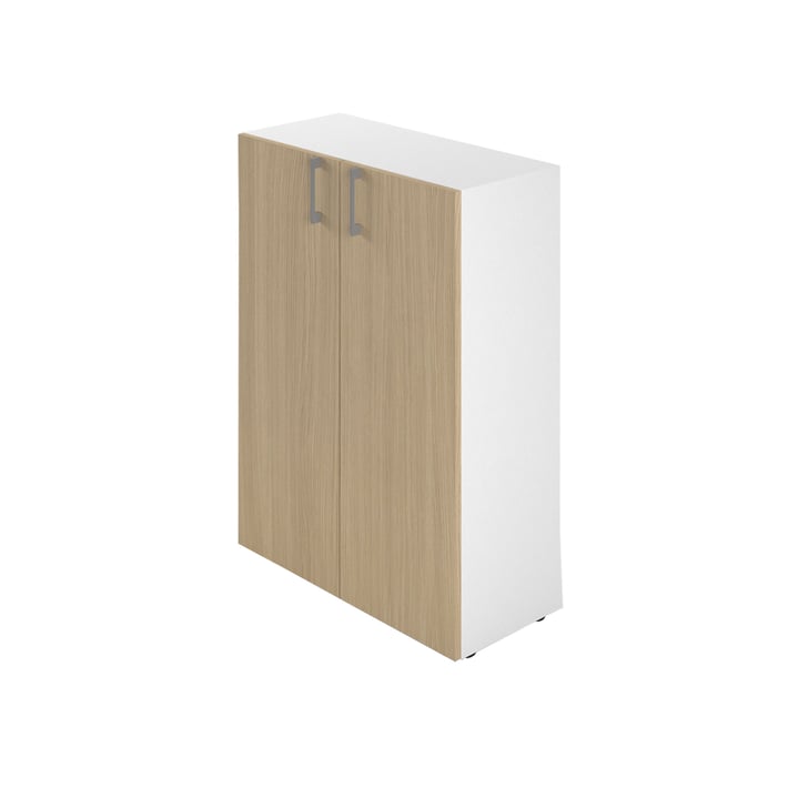 Шкаф Narbutas Nova Basic, 800 х 360 х 1092 mm, ПДЧ, меламин избелен дъб, бял метал, сива дръжка