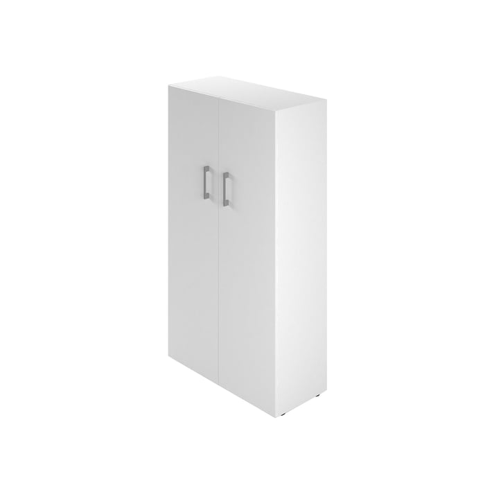 Шкаф Narbutas Nova Basic, 800 х 360 х 1444, ПДЧ, бял меламин, бял метал, сива дръжка