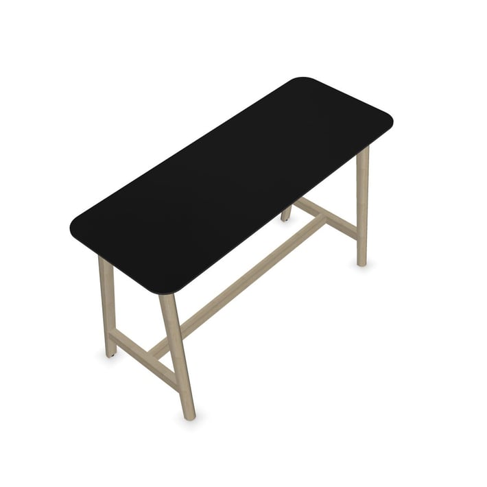 - Висока маса Narbutas Nova Wood, 1800 x 700 x 1050 mm, MDF 26 mm, HPL черен плот, бял метал, крака светъл ясен