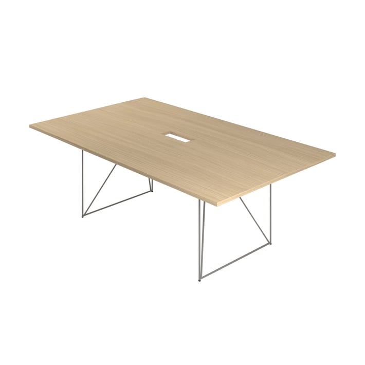 Заседателна маса Narbutas Air, 2200 x 1300 x 740 mm, правоъгълен плот, ПДЧ 25 mm, меламин избелен дъб, сив метал