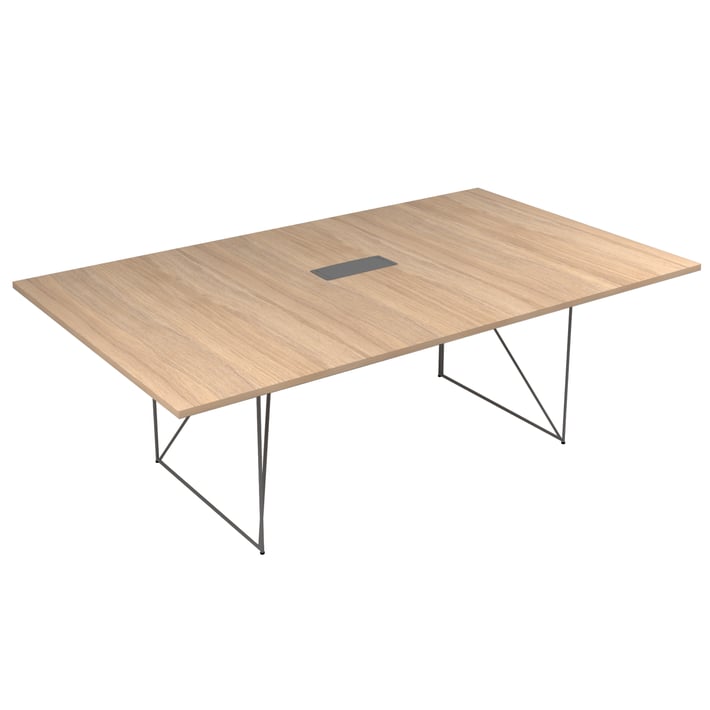Заседателна маса Narbutas Air, 2200 x 1300 x 740 mm, правоъгълен плот, ПДЧ 25 mm, меламин кехлибарен дъб, сив метал