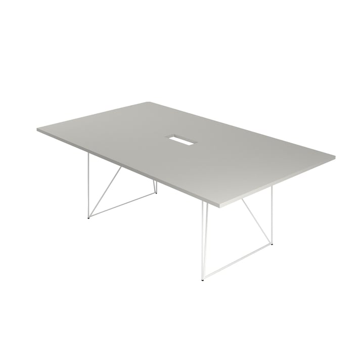 Заседателна маса Narbutas Air, 2200 x 1300 x 740 mm, правоъгълен плот, ПДЧ 25 mm, перленосив меламин, бял метал
