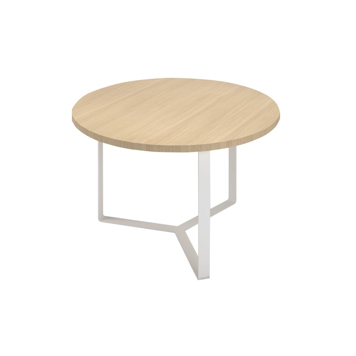- Заседателна маса Narbutas Plana, 1200 x 1200 x 750 mm, кръгъл плот, ПДЧ 36 mm, меламин избелен дъб, бял метал