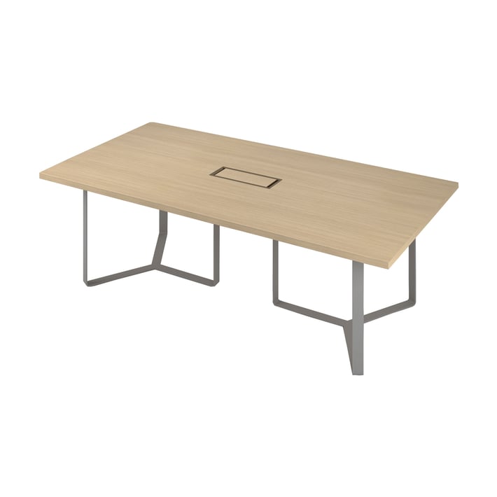 Заседателна маса Narbutas Plana, 2400 x 1200 x 750 mm, правоъгълен плот, ПДЧ 36 mm, меламин избелен дъб, сив метал, бронзов метал на кабелната кутия