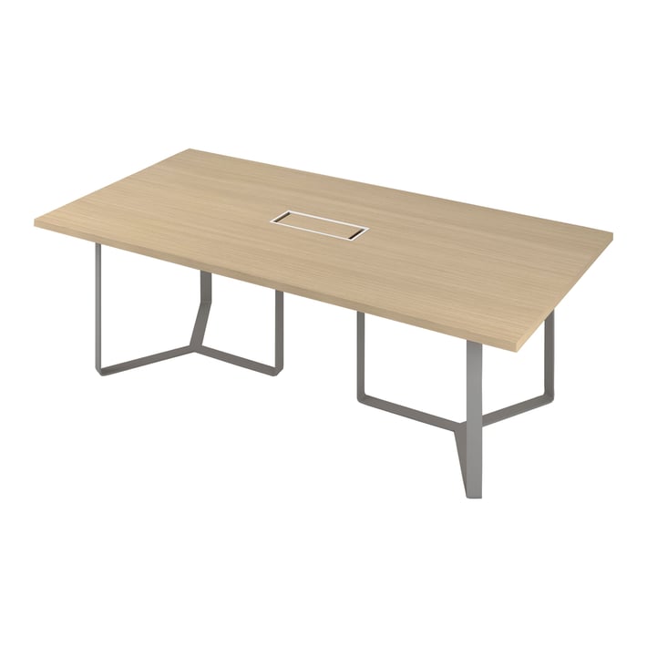 Заседателна маса Narbutas Plana, 2400 x 1200 x 750 mm, правоъгълен плот, ПДЧ 36 mm, меламин избелен дъб, сив метал, бял метал на кабелната кутия