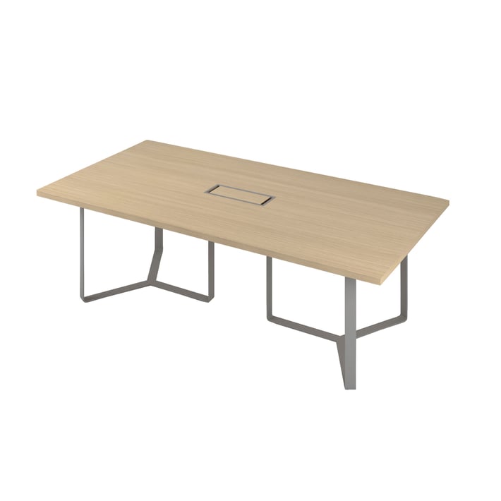 Заседателна маса Narbutas Plana, 2400 x 1200 x 750 mm, правоъгълен плот, ПДЧ 36 mm, меламин избелен дъб, сив метал, сив метал на кабелната кутия