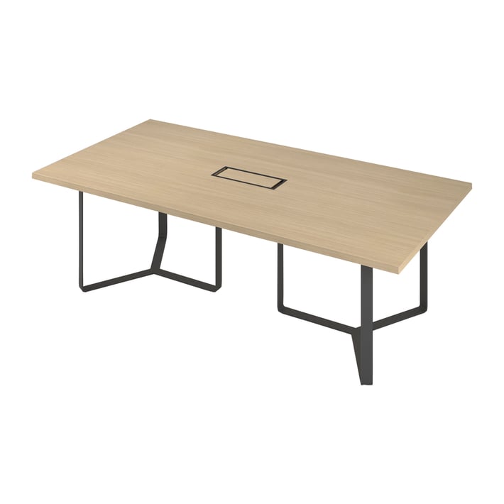 Заседателна маса Narbutas Plana, 2400 x 1200 x 750 mm, правоъгълен плот, ПДЧ 36 mm, избелен дъб, тъмносив метал, черен метал на кабелната кутия