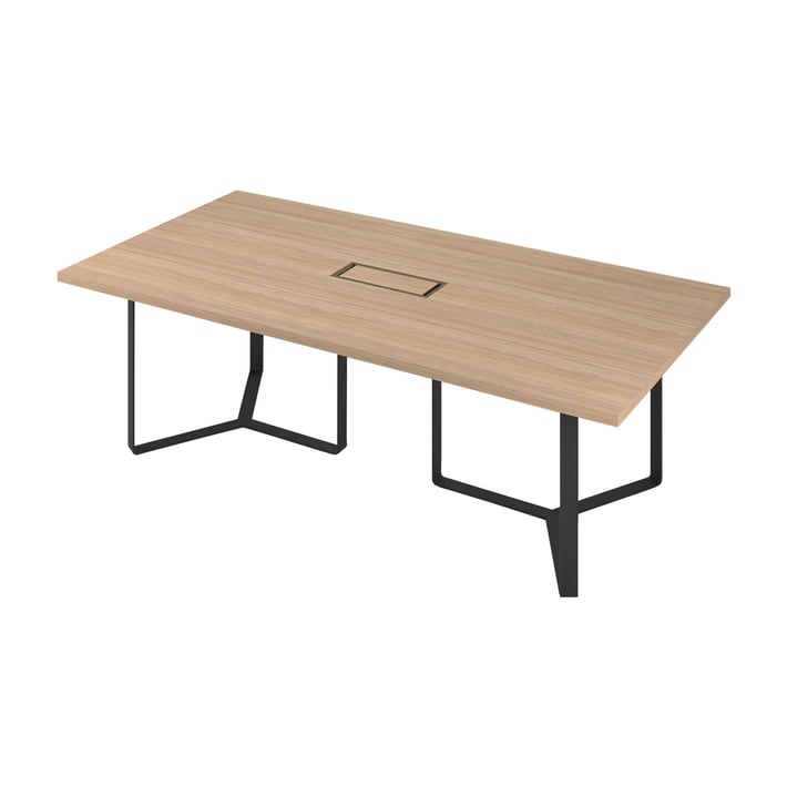 - Заседателна маса Narbutas Plana, 2400 x 1200 x 750 mm, правоъгълен плот, ПДЧ 36 mm, кехлибарен дъб, черен метал, бронзов метал на кабелната кутия