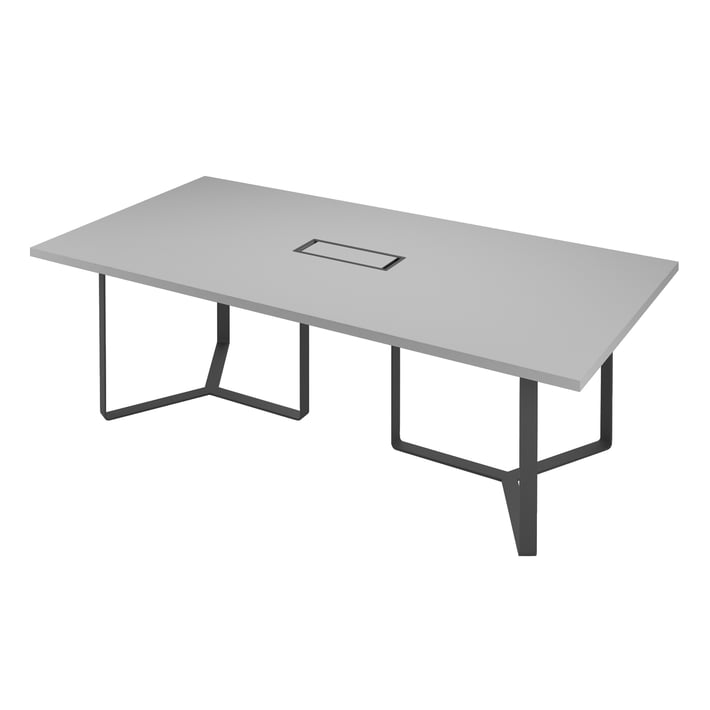 Заседателна маса Narbutas Plana, 2400 x 1200 x 750 mm, правоъгълен плот, ПДЧ 36 mm, тъмносив меламин, тъмносив метал, тъмносива кабелната кутия