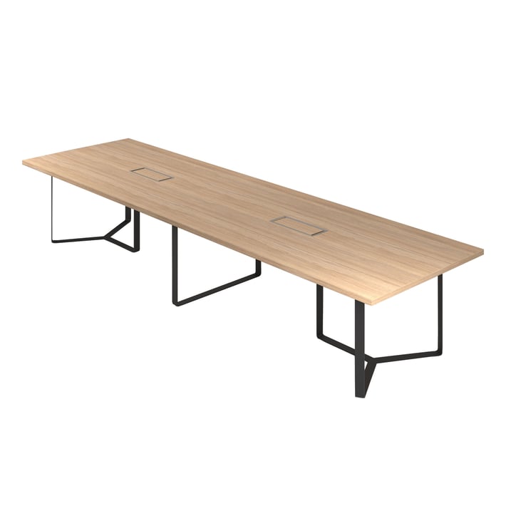 Заседателна маса Narbutas Plana, 4200 x 1200 x 750 mm, правоъгълен плот, ПДЧ 36 mm, меламин кехлибарен дъб, черен метал, сив метал на кабелната кутия