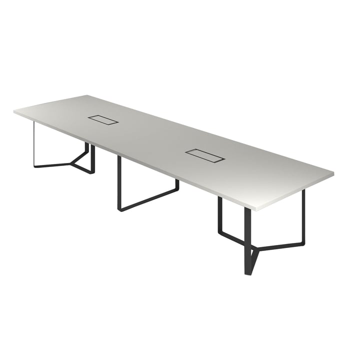 Заседателна маса Narbutas Plana, 4200 x 1200 x 750 mm, правоъгълен плот, ПДЧ 36 mm, перленосив меламин, черен метал, тъмносив метал на кабелната кутия