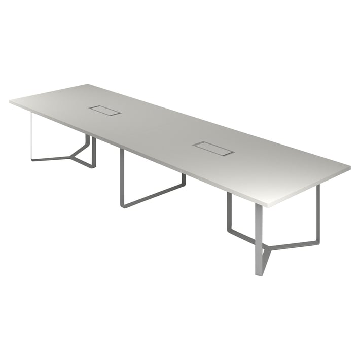 Заседателна маса Narbutas Plana, 4200 x 1200 x 750 mm, правоъгълен плот, ПДЧ 36 mm, перленосив меламин, сив метал, сив метал на кабелната кутия