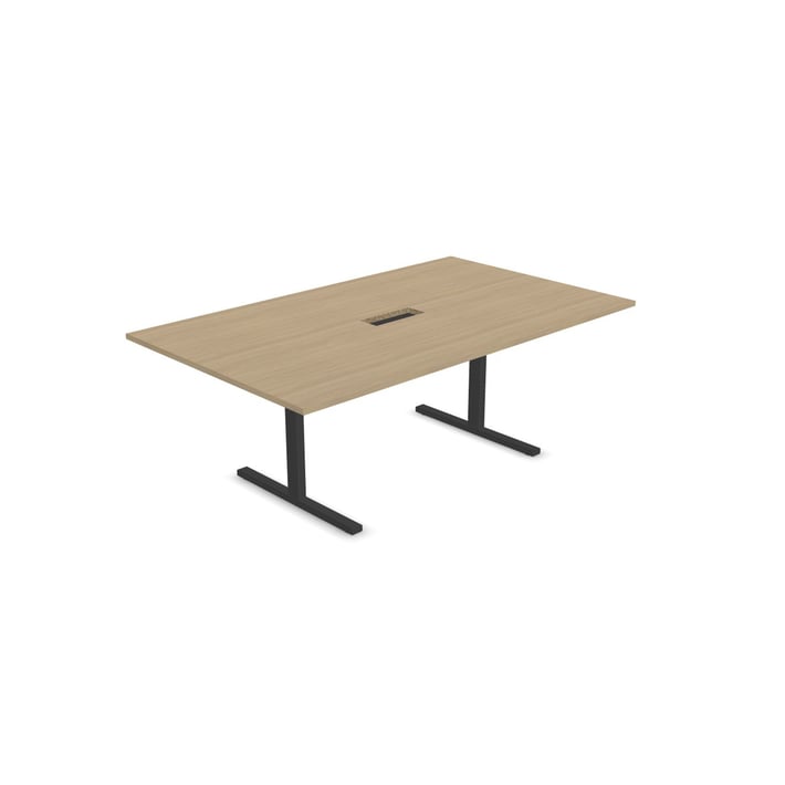 Заседателна маса Narbutas T-Easy, 2000 x 1200 x 740 mm, правоъгълен плот, ПДЧ 25 mm, меламин избелен дъб, тъмносив метал, крак тип I