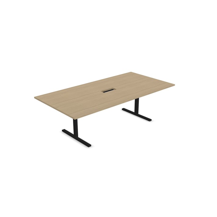 Заседателна маса Narbutas T-Easy, 2400 x 1200 x 740 mm, правоъгълен плот, ПДЧ 25 mm, меламин избелен дъб, черен метал, крак тип I