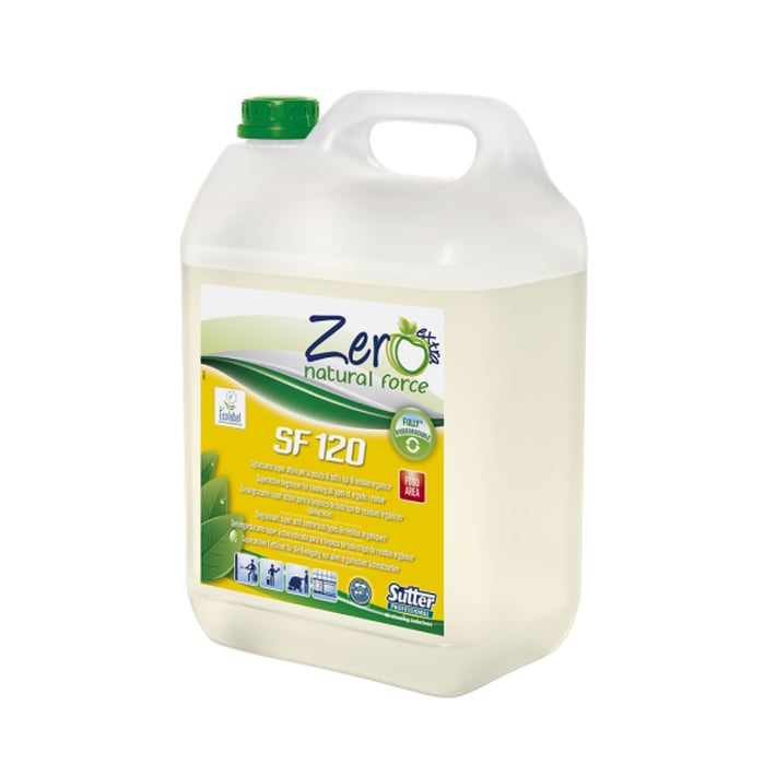 Sutter SF 120 е силно активен каустичен обезмаслител, предназначен за дълбоко почистване и ефективно отстраняване на всички видове органични замърсявания. Подходящ е за професионална употреба при поддръжка на подови настилки и твърди повърхности в индустриални, търговски и хранителни обекти.Формулата съдържа специални агенти против повторно отлагане на замърсяванията и мощни разтварящи мазнините компоненти, които осигуряват отлични резултати дори при силно замърсени площи. Продуктът е безцветен и без аромат, което го прави подходящ за използване в среди с високи хигиенни изисквания, включително HACCP зони.Съставът включва суровини от растителен произход (повърхностноактивни вещества, получени при обработката на царевица, картофи и кокосово масло). Формулата е без фосфати и без никел (под 0.01 ppm), което намалява екологичното въздействие.Начин на употреба: