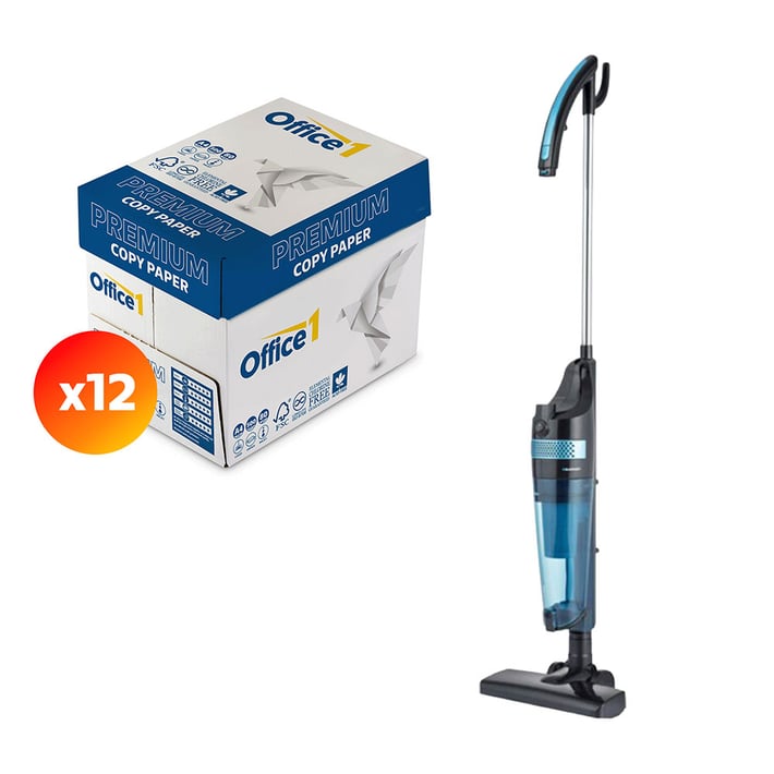 Към комплекта е включена и прахосмукачка Blaupunkt VCH201 – вертикален модел 2 в 1 с мощност 800 W и контейнер 1.5 L. Мощният мотор осигурява отлична всмукателна сила за ефективно почистване на подове, килими, мебели и дори труднодостъпни пространства. Сменяемият HEPA филтър и тройната система за филтрация задържат прах, бактерии и фини частици, като гарантират по-чист въздух в помещението.Моделът предлага удобство и свобода на движение благодарение на 4.8 m кабел и сгъваема дръжка, което го прави компактен и лесен за съхранение.С тегло от едва 2.6 kg, прахосмукачката е изключително удобна за ежедневна употреба.При покупка ще спестите 67.94 евро с ДДС, което прави предложението изключително изгодно и практично решение както за офиса, така и за дома.
