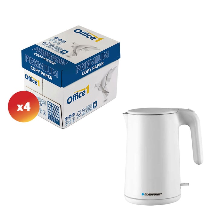 Получавате и Електрическа кана за вода Blaupunkt EKS701, 1600 W, 1.5 L, бялаКаната е изработена изцяло от солидна и издръжлива неръждаема стомана, така че може да се използва безпроблемно дълги години.Изключително лесна е за използване, благодарение на въртящата се стойка, която също така ви позволява да скриете кабела. Разполага с удобен бутон, който автоматично отваря капака. Размери: 22 х 15.6 х 25.4 cm.