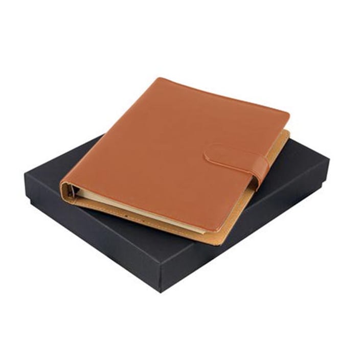 Елегантен и практичен органайзер формат А5, създаден за хора, които ценят реда, стила и професионализма.Корицата е изработена от висококачествена екокожа, придаваща изискан и модерен вид.Вътрешността е функционално организирана с метални рингове за лесно добавяне или изваждане на страници.Листовете с редове и дати улесняват ежедневното планиране.Комплектът идва в луксозна черна кутия, подходяща за подарък на колега, бизнес партньор или близък човек.