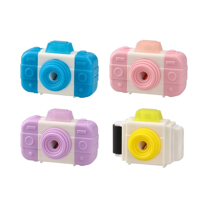 Острилка с гума за триене с атрактивен дизайн във формата на фотоапарат.