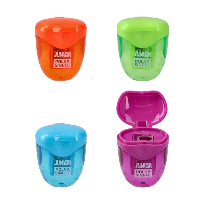 Острилка Junior Polka Single, с контейнер, асорти, 1 брой